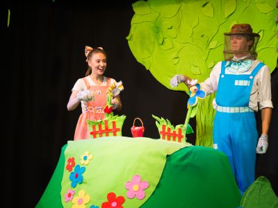 Спектакль — Общение, где ребята принимают непосредственное участие, пробуют себя в роли лягушек и пчёл с настоящими театральными куклами. После спектакля возможно близкое знакомство с героями сказки и фото на память.
