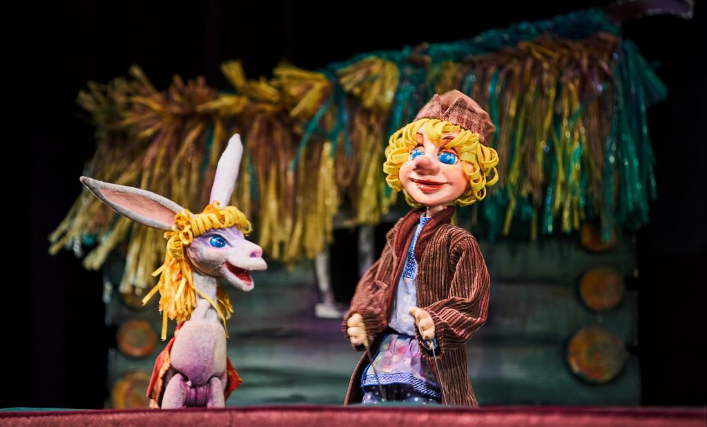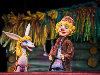 Кукольные чудеса в двух действиях по сказке Ершова. Разные бывают герои в мире сказок: прекрасные принцы и коварные злодеи, огнедышащие драконы и спящие красавицы. Но в каждой стране обязательно встречается один из любимых героев — настоящий Друг. Карлсон — в Швеции, Винни Пух — в Англии, Маленький Принц — во Франции. В России один из самых верных сказочных друзей — неказистый, как закорюка, крошечный, но волшебный Конёк-Горбунок. Эта сказка очень заманчива для театра кукол, ведь и длинноухий смешной Конёк-горбунок, и чудесные жар-птицы, и огромный Чудо-юдо Рыба-Кит, всевозможные невероятные происшествия не могут не увлечь кукольников. С помощью богатейших современных «кукольных» возможностей в театре кукол режиссёр — заслуженная артистка России Ольга Гущина и художник заслуженный работник культуры РФ Александр Корытный представили «кукольные чудеса» по сказке Ершова «Конек-Горбунок». Очарование сказочного представления раскрывается в оживающих декорациях: с помощью видеоэффектов мгновенно меняется место действия, перенося зрителей из деревни, где жили братья Ивана-дурака, — в царские палаты, на берег моря-океана или же в чертоги Луны.