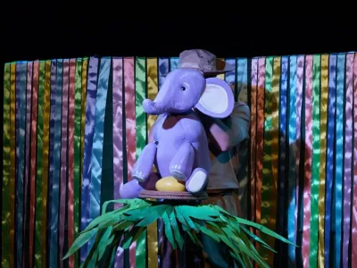 Спектакль для маленьких зрителей «Слон в гнезде». Яркая, удивительная история про доброго, ответственного и верного своему слову слона, который не испугался охотников, преодолел океан, терпел насмешки ради маленького хрупкого яйца и необычного зверька, который появится из него. Рекомендовано для зрителей старше 3 лет.