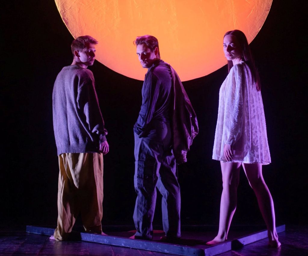 Три дисциплины — театр, рисование песком и видео — соединяются, общаются и отвечают друг другу.