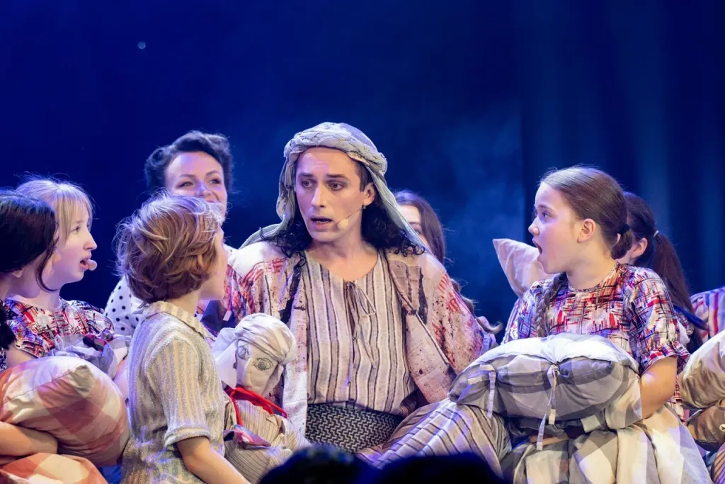 Мюзикл в 2-х актах. Библейская история об Иосифе и его братьях — история о зависти, любви и прощении. В России мюзикл «Иосиф и его удивительный плащ снов» поставлен впервые. Авторы оригинальной версии — композитор Эндрю Ллойд Уэббер и поэт-драматург Тим Райс — известные во всём мире создатели таких хитов жанра мюзикла как «Кошки», «Призрак оперы», рок-оперы «Иисус Христос — Суперзвезда» и других. Именно после выхода в свет «Иосифа» в 1968 году к молодым авторам пришёл первый настоящий успех. Произведение неоднократно перерабатывалось и, написанное первоначально как поп-кантата, в итоге превратилось в шоу. В музыке «Иосифа» Э.Л. Уэббер использует самые различные жанры и стили — популярные мотивы шестидесятых, кантри, пародию на рок-н-ролл и шансон, балладу. Ирония и лирика тесно переплетены в этой истории, завоевавшей сердца зрителей многих стран. В спектакле принимают участие взрослые и юные артисты, балет и оркестр Санкт-Петербургского государственного детского музыкального театра «Карамболь». Премьера состоялась 30 октября 2015 года. Музыкальный руководитель спектакля, художественный руководитель театра — заслуженный деятель искусств России — Ирина Брондз. Спектакль идёт с антрактом.
