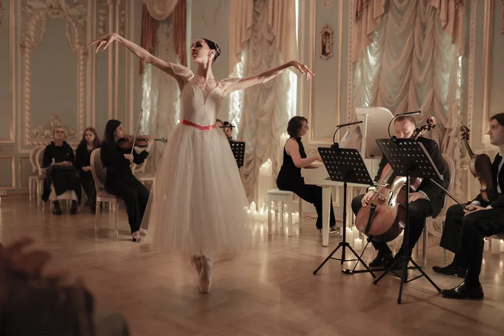 От земной стихии Вивальди к небесной лёгкости Шопена в сочетании с грациозными движениями артистов балета — это незабываемое путешествие сквозь время и пространство под сводами старинного особняка Серебрякова!