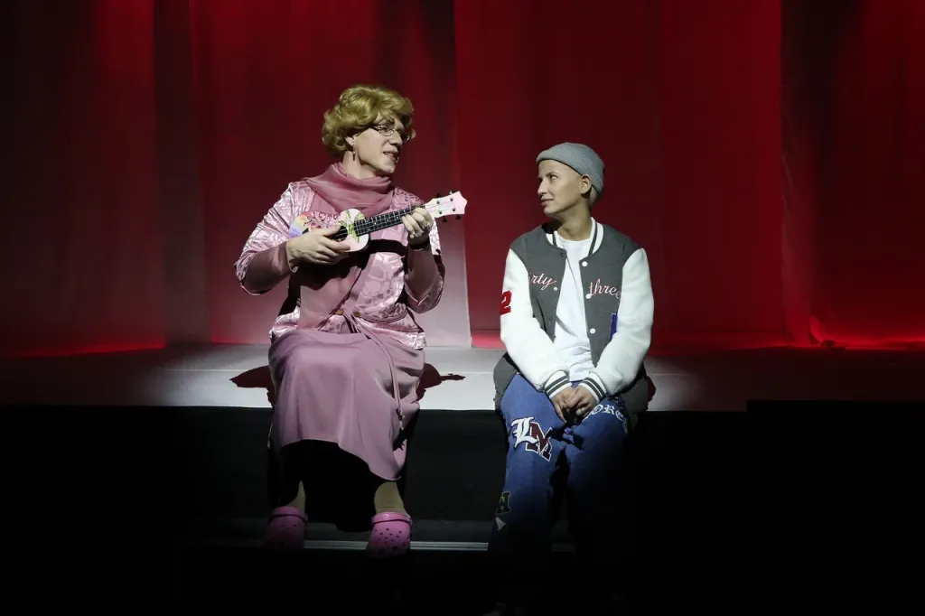 В спектакле два главных действующих лица: мальчик Оскар, который неизлечимо болен, и Розовая дама, ухаживающая за ним сиделка. Розовая Дама, или, как Оскар её называет, Розовая Мама, предлагает мальчику игру — каждый день он как бы проживает 10 лет жизни. И за 10 дней, оставшихся до смерти мальчика, проходит вся жизнь: от детства, юности, женитьбы до старости и смерти. И ещё, по совету Розовой Дамы, Оскар обращается к Богу, он пишет Ему письма.