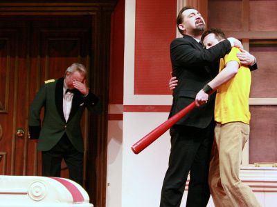К окончанию спектакля зрители (те, кто знают) начинают понимать смысл первоначального авторского названия комедии — Оut of Order. Основанное на устойчивом фразеологическом выражении, оно, адресованное самому загадочному герою пьесы, означает «выпадающий».