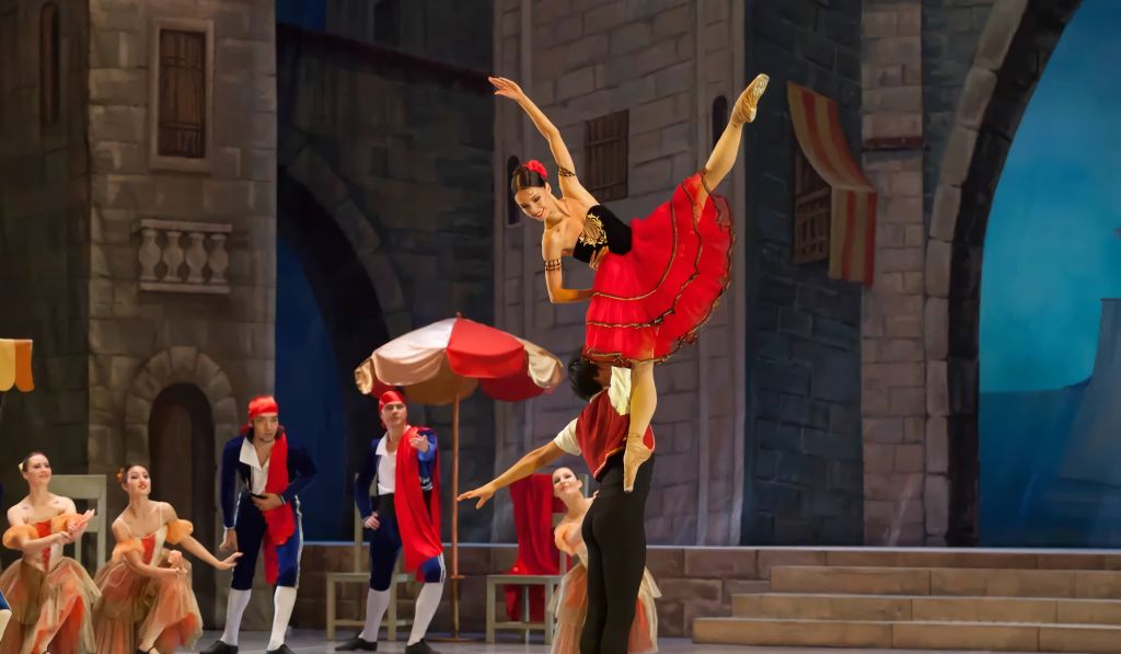 В Барселоне, на площади у кабачка Лоренцо, веселится народ. Здесь появляется начитавшийся рыцарских романов Дон Кихот в сопровождении своего слуги Санчо Пансы. Китри, дочь хозяина кабачка, влюблена в цирюльника Базиля. Но в планах Лоренцо — брак дочери с богатым дворянином Гамашем. На фоне этой любовной интриги Дон Кихот выглядит мечтателем, полностью теряющим связь с реальностью. Не случайно уснувшего Дон Кихота преследуют видения: он — в царстве дриад, среди которых Китри в образе прекрасной Дульсинеи. Развязка истории происходит в кабачке. Здесь нашли убежище Китри и Базиль, но их настигает Лоренцо. Базиль разыгрывает сцену самоубийства, а Китри умоляет Дон Кихота уговорить отца выполнить предсмертную просьбу Базиля — благословить их любовь. Как только Лоренцо исполняет желание дочери, Базиль «оживает». Почетное место на свадьбе Китри и Базиля отводится благородному рыцарю Дон Кихоту. В разгар веселья он отправляется в путь на поиски новых подвигов.