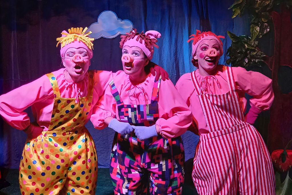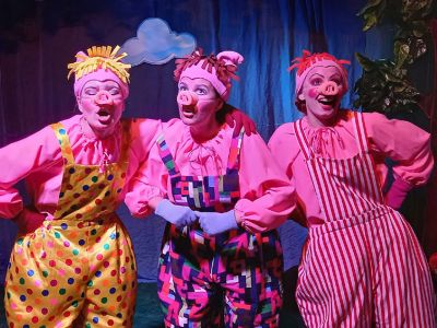В основе спектакля лежит известная всем с детства сказка о приключениях трех поросят.