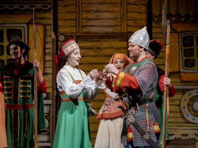 Музыка спектакля очень легкая для восприятия — это мелодичные песни и народная танцевальная музыка. Русские, татарские, чувашские, мордовские интонации и костюмы как яркие ленты вплетены в его художественное оформление.