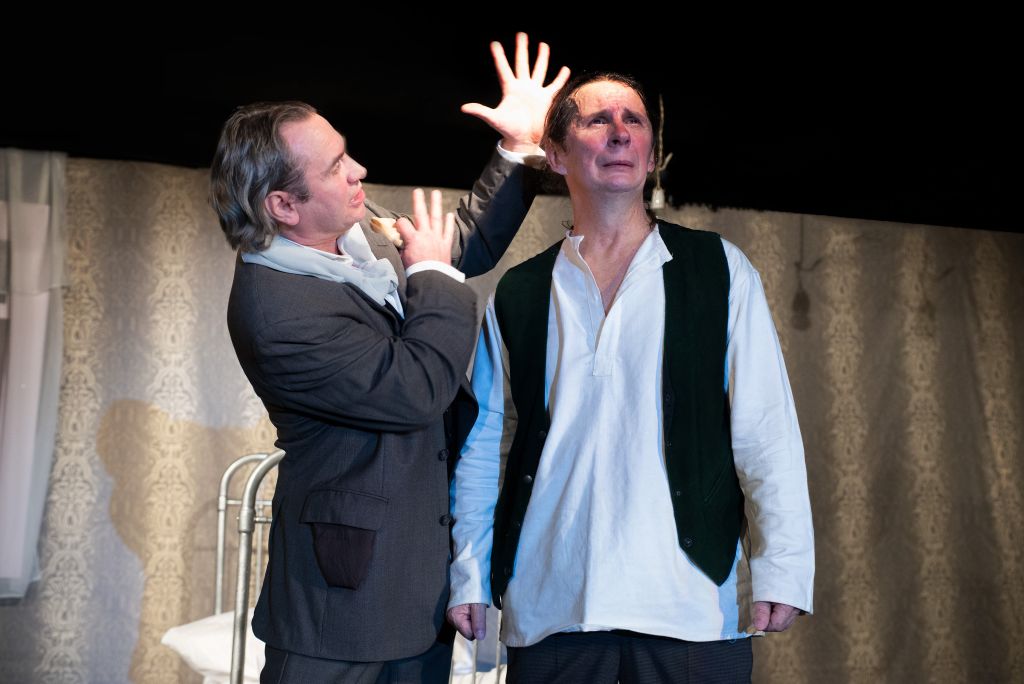 Постановка по пьесе Николая Эрдмана (1900-1970), написанной в далеком 1928 году, и имеющей очень непростую театральную судьбу. В основе спектакля — судьба того самого «маленького человека», однажды то ли по воле окружающих, то ли по собственному безволию решившего поиграть в смерть. Дело в том, что только после ухода из этой жизни судьба обещает ему прекрасное и интересное будущее, которого он достоин. Но не могут ли чернила, пролитые на предсмертную записку, вдруг оказаться каплями чей-то чужой крови? В театре возможно всё. А в жизни?