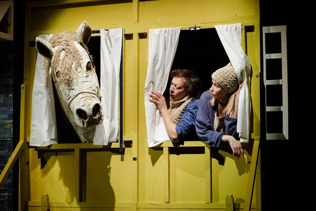 Попав на спектакль «Вафельное сердце», вы перенесетесь в маленькую норвежскую деревеньку Щепки-Матильды, где живут неугомонные друзья Лена и Трилле. Каждый их день полон удивительных событий: они строят канатную дорогу, пытаются повторить подвиг Ноя, ищут девочке нового папу, спасают овец в горах, ссорятся, мирятся, несут потери и скорбят, а также, чуть не погибают, спасая лошадь. В общем скучать не придётся.