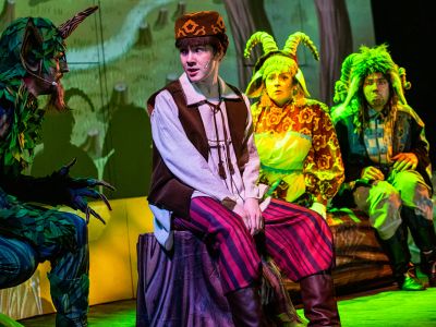 В спектакле используются яркие световые эффекты.