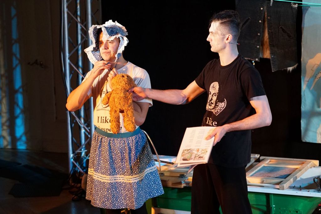 «Крокодил» — спектакль-импровизация. Молодые артисты сочиняют его на глазах у зрителей и вместе со зрителями. Оказывается, для того чтобы сыграть множество персонажей, описанных Чуковским, вполне хватит двух актеров, ванны и песочницы. И если эти актеры способны превратиться и в Неву, и в Африку, и в тачанку, и в аэроплан, и в разных зверей, то даже самые маленькие дети поверят, что в театре возможно всё!