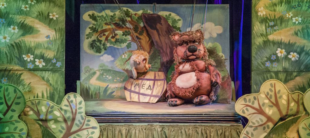 В спектакле использованы штоковые марионетки. На сцене актёры работают в «живом плане».