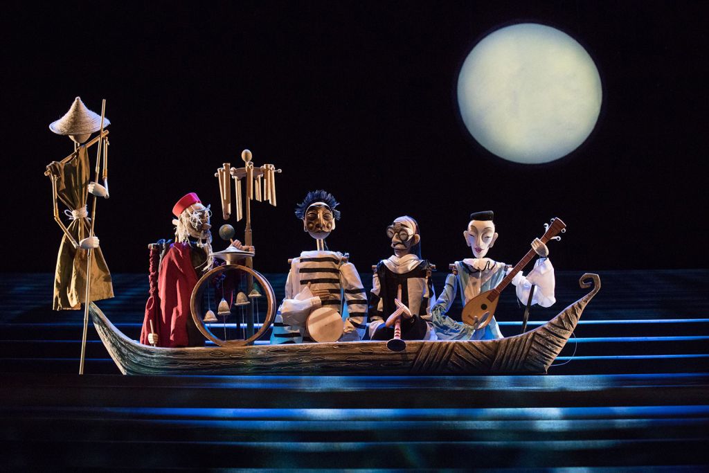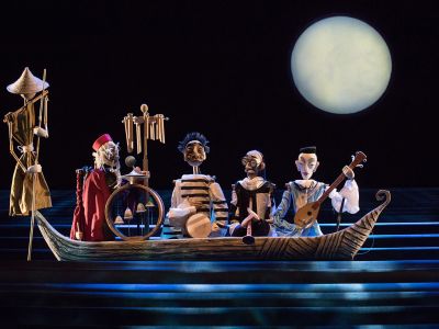 История любви жестокосердной красавицы Турандот и принца Калафа разыгрывается с такой неподдельной страстью, что порой забываешь, что на сцене куклы. Огромная Луна, венецианские мосты, чёрная гладь воды, гондолы, веера, колокольчики, и, конечно же, куклы — настоящие произведения искусства — завораживают, заставляя на два часа забыть обо всём, кроме того, что происходит на сцене.