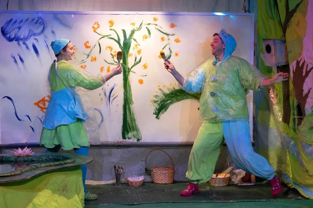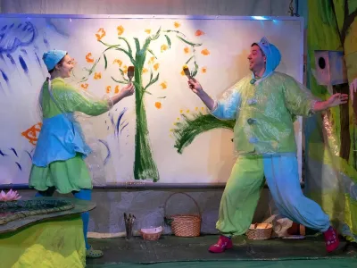 В весеннем спектакле греет солнце, тают сосульки, природа постепенно просыпается. Дети не только наблюдают, но и активно участвуют в действии вместе с актерами: пускают кораблики в ручье и кормят скворца червячками. Весной все оживает — и у нас все будет живым и настоящим: живая музыка, настоящая вода в ручье, искренний детский смех и радость от узнавания нового.