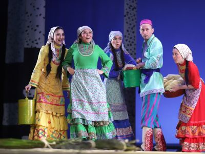 Драматические действия спектакля переплетаются с народными играми, плясками и обычаями. В музыкальной основе спектакля – песни и музыка, сочиненная композитором Нуром Даутовым в исполнении оркестра театра.