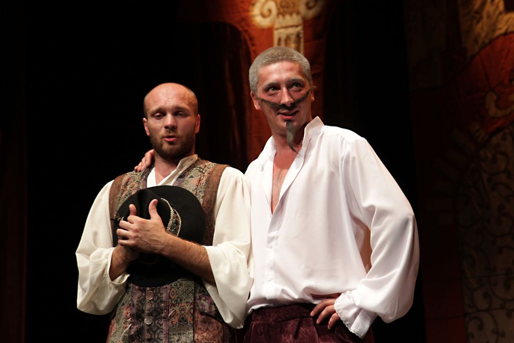 Первая пятиактная комедия драматурга соединяет в себе средневековый фарс и элементы итальянской комедии масок. В режиссуре художественного руководителя Сергея Тимофеева к названным жанрам добавились клоунада и драма.