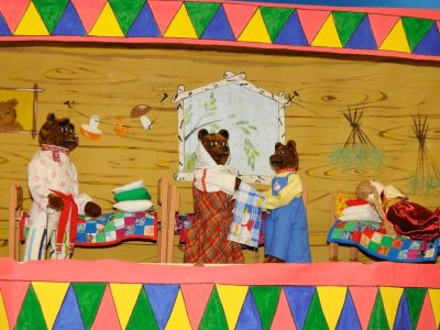 Известная сказка о приключениях Машеньки, заблудившейся в лесу и попавшей в дом к трем медведям, дополнена музыкой, песнями и чудесными рассказчиками — Сыроежкой и Мухомором.