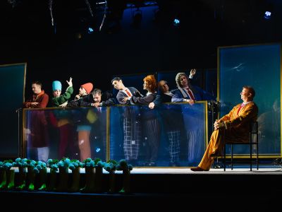 В произведении классического «Ревизора» мы знаем ответ, но «Ревизор» Театра Эстрады имени Аркадия Райкина объединит в себе два произведения писателя — самого «Ревизора» и «Театральный разъезд после представления новой комедии». И если первая пьеса хорошо знакома широкой публике, то вторая не у каждого на слуху. В сценической интерпретации режиссёра Стаса Парфёнова именно «Театральный разъезд…» даст основу для столкновения и выведет на сцену поистине положительного персонажа, имя которому Смех.