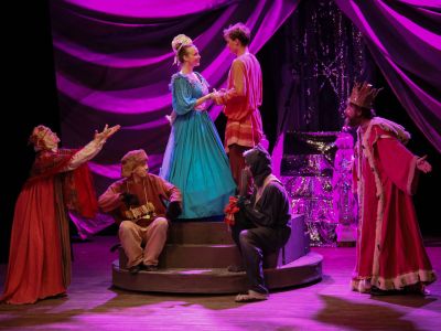 Вот вы сказки любите? И я тоже! Только у меня от этой сказки чуть оказия не произошла — так смеялся, чуть было не лопнул! А все почему? Уж больно забавные герои Кот Васька да Пес Журка. Их хозяин Мартынка от смерти спас, и потому служить ему стали они верой и правдой. С кем только ни воевали — и с мышами, и с раками, и со злой ведьмой-оборотнем. Побывали и под землей, и по белу свету хаживали. С царями и королевишнами знались, за одним столом пиры пировали. И как им эти чудеса удавались? Вот об этом-то вы и узнаете, когда придете, да посмотрите. Всех зовем и больших, и малых, молодых, и старых — всем места хватит, всем радости добавит!