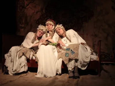 «Эта постановка про сегодняшний день, и отчасти про каждого человека, вне зависимости от национальности, возраста и жизненного опыта. Сказочность предопределяет национальные мотивы, которыми пронизан спектакль. Мы показываем синтез традиций и образов, вырабатывая общий аполитичный культурный код, способный вызвать отклик у каждого. В основе постановки — пьеса современного уральского драматурга Олега Богаева, а сценическая версия — результат работы команды. В нашей истории изменен финал, добавлено немного комизма. Сегодня важно говорить о серьёзных вещах с улыбкой» — продюсер проекта Анастасия Кудрявцева.