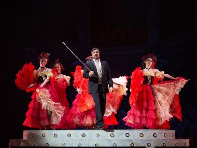 История преодоления пропасти между шансонеткой и аристократом проживается в спектакле на едином дыхании. Действие развивается стремительно, но зритель успевает порадоваться и красоте любимых мелодий, и страстности дуэтов, и очаровательной легкомысленности песенок и куплетов про красоток кабаре и частицу черта. Атмосферу создают и пыльная пальма у барной стойки, и пролеты девиц в неглиже, и неизменные разговоры у бильярдного стола, и суета мужчин-завсегдатаев. На сцене царят свободные нравы кабаре, но и здесь есть место искренним порывам и высоким чувствам.