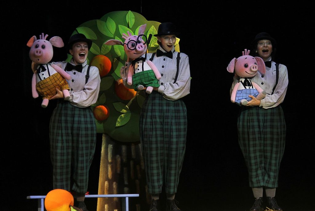 В спектакле поросята — как поросята, волк — как волк. Классическая история. Зрители будут сопереживать маленьким поросятам, которые, как все дети, любят играть, веселиться, беззаботно проводят время, греясь на солнышке.