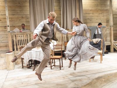 Уютная деревянная веранда, куда сквозь льняные шторы проглядывает летнее солнце. Тургеневские барышни спасаются от палящего зноя изящными шляпками с широкими полями, кружевными зонтиками, домашним мороженым и холодной водой из ручья, протекающего прямо посреди сцены. Аккомпанементом пению птиц становятся романсы Бетховена. Именно в этот русский оазис, в этот дом, дышащий теплом и уютом, где совсем не хочется говорить ни о политике, ни об общественных воззрениях и приезжает в мае 1859 года Аркадий Кирсанов вместе со своим другом Базаровым…