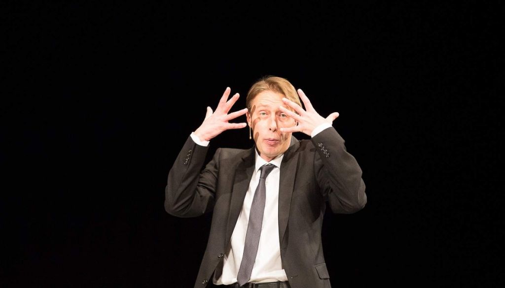 Его спектакль «Сервиз на шесть персон» это не столько представление, сколько задушевный монолог, о любви, семье и детях. Он лучше всех поймал атмосферу наших дней и так тонко и нежно рассказывает нам о нас же. Он будто проговаривает все самое главное и жизненно необходимое. Он рассказывает о важном для каждого сидящего в зале. А сам герой переносит нас в разное время и предстоит перед нами в разных образах. Это иронично, мило и грустно. Он нам во многом признается, доносит до нас свои сокровенные мысли, потаенные чувства. Он рассказывает о себе так, что мы видим в зеркале сцены собственное отражение.