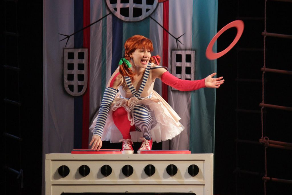 Спектакль «Пеппи Длинныйчулок» — это история про самую сильную девочку на свете, у которой папа — капитан дальнего плаванья и по совместительству король на острове. Ее боятся бандиты, уважают полицейские и любят дети со всего света, потому что она рассказывает такие невероятные истории, что они становятся явью! Эта маленькая рыжая девочка считает, что взрослые не умеют веселиться, что у них есть время только на скучную работу, и, вообще в их голове куча предрассудков, и носят они дурацкую одежду.