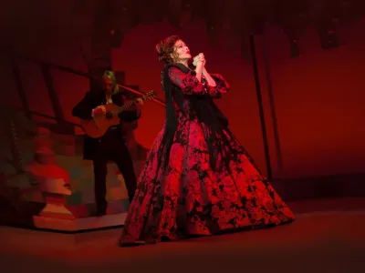 Масштабные декорации, удивительные световые эффекты перенесут героев спектакля из замка графини де Бельфлер на тенистые аллеи парка и жаркие улицы испанского города. А роскошные, расшитые золотой нитью костюмы воссоздадут великолепие эпохи Возрождения.
