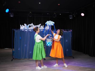 Наши актрисы свободно говорят по-английски, а Солнышко учит английский язык на спектакле вместе с ребятами!