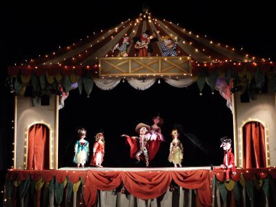 Спектакль поставлен в традиции западноевропейского кукольного балагана. Известные маски комедии дель арте — Арлекин, Пьеро, Коломбина — разыгрывают на кукольной сцене всемирно известный сюжет о Дон Жуане. Разыгрывают, разумеется, по-своему — так, как могут увидеть его куклы. В их представлении нет места трагедии и высокому философствованию. Точнее, место есть, но оно — балаганное. А балаган — сгусток невероятного и сумасшедшего сплетения всех жанров. Поэтому канкан здесь соседствует с оперой, цирковая эксцентрика — с магией волшебного фонаря, а возвышенный романтизм — с инфернальными погружениями. Маленькая сцена кукольного балаганчика. Кукольные артисты. Кукольные страсти... А Балаганщик, без которого это представление невозможно, самим куклам не виден. Для них его всё равно что нет...