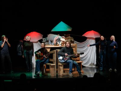 В спектакле работают большие мягкие планшетные куклы, похожие на добрые плюшевые игрушки из детства. Специально для спектакля написаны музыка и песни, исполняемые под аккомпанемент живой гитары.