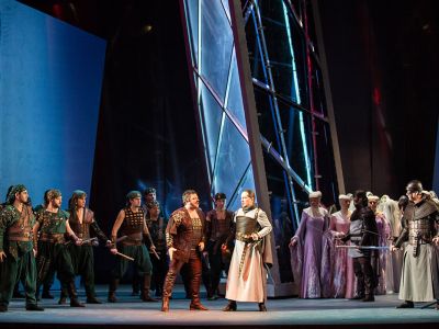 В этой опере три главных составляющих: мир графа ди Луны, мир Леоноры и мир цыган – Манрико и Азучены. Это три интонации, три оттенка, три образа «Трубадура». Поэтому в сценическом решении центральным элементом декорации являются три башни, у каждой – три стороны, все они разные и символизируют миры главных героев. Костюмы героев соответствуют эпохе. Знаменитый факт: до сих пор в трактире около театра «Ла Скала» в Милане замурована бутылка шампанского: ее получит тот, кто складнее всех перескажет сюжет сочинения…