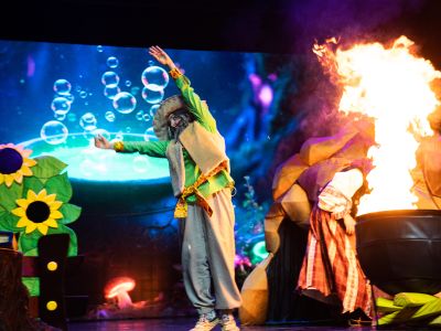 В нашем спектакле вы встретите настоящую магию, где в котле делает химические опыты «Баба Яга», большие молнии от «Тесла» машины, необычные появления на сцене, завораживающие мыльные пузыри и много маленьких чудес.