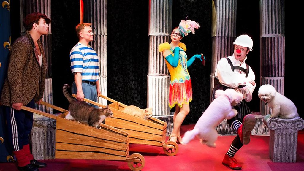 Спектакль «Я — клоун, или Котостройка» это взгляд на великие имена через призму современности и, конечно же, через призму Театра кошек. Входя в образ и исполняя репризы великих клоунов, Дмитрий Куклачев усложняет номера, добавляя в них трюки с кошками.