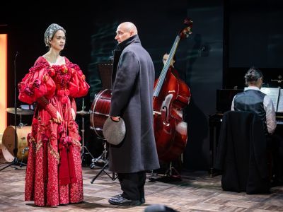Объектом рефлексии для режиссера становится время, конец 1930-х. Так же, как в «Чайке», предыдущей работе в Александринском театре, в новом спектакле нарратив — не главное. Язык сценического повествования у Павловой ассоциативен. Здесь реплики героев уравнены со всем аудиальным многообразием, складывающимся из звуков шагов, передвигаемых стульев, тиканья часов, обрывков мелодий, песен, кусочков оперных арий, барабанной дроби и так далее.