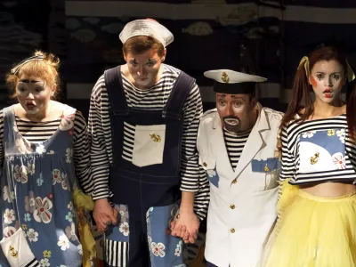 Наша постановка — это не просто история о старухе и владычице морской. Это настоящее морское приключение! Поплывут на импровизированном корабле не матросы, а клоуны. Их номера ставил художественный руководитель театра клоунады «Лицедеи» Леонид Лейкин. Оригинальные костюмы, танцевальные номера, «морские декорации» и веселые игры ждут вас!