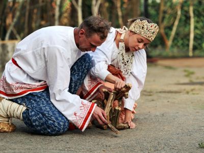 Это действо, в котором обряды и ритуалы народов Пермского края переосмысляются через пластические, визуальные и перформативные выразительные средства, а настоящие предметы деревенского быта становятся живыми существами.