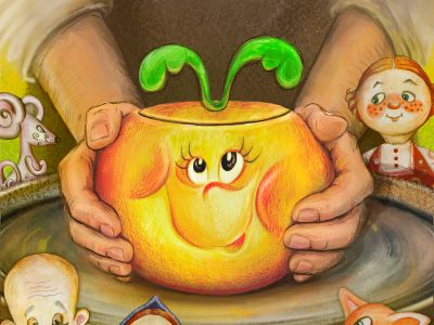 Эта история адресована самому маленькому зрителю. Ребята и взрослые увидят, как из простой глины рождается добрая и весёлая сказка. Как мастер вкладывает всё своё умение и любовь в глиняную игрушку, и она оживает. Хорошо знакомые персонажи репки заиграют новыми красками и характерами. Да и сама репка будет полна сюрпризов и весёлых неожиданностей. Дети не только посмотрят спектакль, но и станут его участниками. Помогут прогнать непрошенных гостей, вместе с дедом и бабкой вытянут репку и узнают, как из простой глины изготовить замечательную игрушку. Побывав на нашем спектакле малышу наверняка захочется попробовать сделать своего любимого героя, и тогда сказка обязательно придет и в ваш дом.