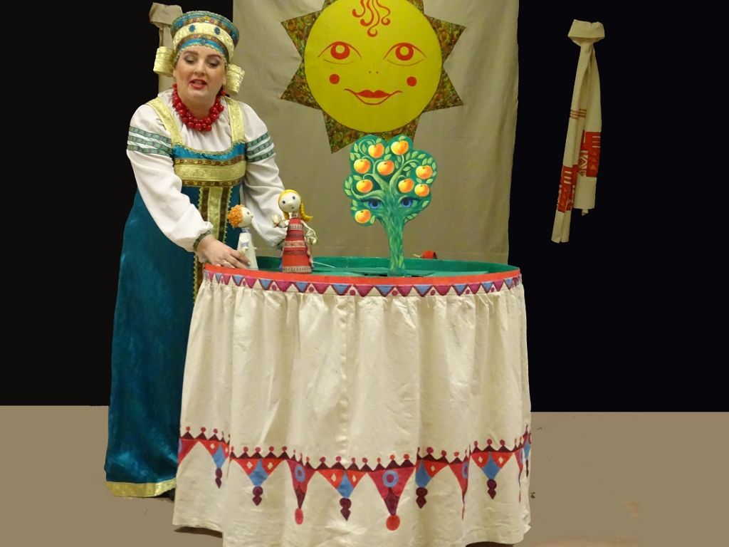 Непоседа-сестрица и её несмышлёный братец проходят немало испытаний, встречаются с Бабой Ягой и другими сказочными персонажами. А играет их всех актриса Виктория Орешкина, она же красавица-сказительница.