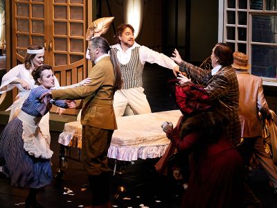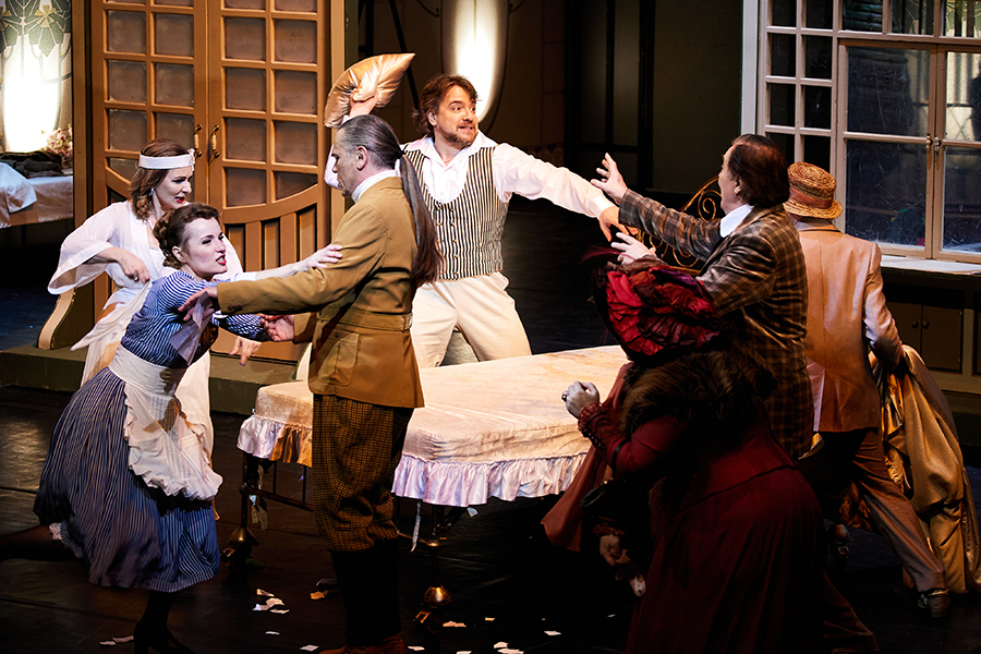 «Свадьба Фигаро» — это комедийный спектакль, весёлое праздничное представление с переодеваниями и разрастающейся до хаоса путаницей; порой только желание не упустить ни одной моцартовской ноты удерживает зал от взрывов хохота. Но гений композитора придает происходящему в севильском замке безумству потаенную глубину. В первой сцене Фигаро линейкой измеряет габариты комнаты; ко всему, что зритель увидит далее, Моцарт применяет другую, невидимую шкалу. По ней оценивается высокое и низкое, и ее градации тонки и противоречивы. Результаты получаются неоднозначные: если приложить эту «линейку» к социальной иерархической лестнице, то граф окажется наверху, Фигаро — внизу, если же попробовать измерить душевные качества героев — скорее наоборот. Так же ставится вопрос о чести и честности: один готов убить за свою честь, но сам бесчестен, другой громоздит обман на обмане, но чести не теряет. При всем своем родстве с масками комедии дель арте персонажи «Свадьбы Фигаро» — живые люди, и их «показатели» на шкале высоты и низости, благородства и плебейства способны кардинально меняться, так что даже завистливая интриганка может преобразиться в заботливую мать, а распутный ловелас — в любящего мужа. Живыми — настоящими, чувствующими — героев делает моцартовская музыка.