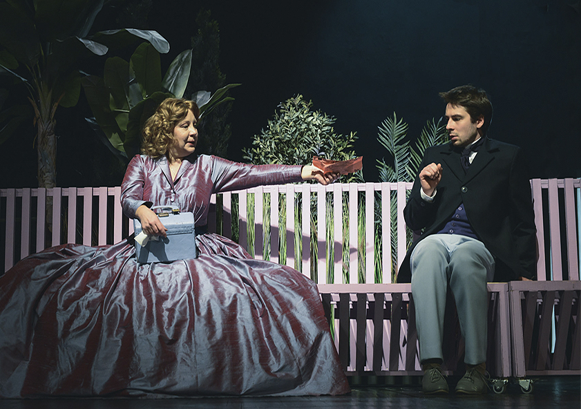 Несчастливцев, скрывая свою реальную роль в жизни и играя благородного состоятельного родственника, со всей мощью своего трагического темперамента внедряется в гущу событий, но создаёт лишь нелепые ситуации, не понимая, насколько смешон его «благородный герой» в условиях реальности, а не сцены. Так театр встречается с жизнью, в которой уже размыты границы моральных устоев, где пахнет шальными деньгами, а на смену непререкаемым идеалам пришли чёрствость, трезвый эгоизм, грубая корысть и похотливая распущенность. Театр встречается с той самой жизнью, отражением которой он должен являться. Узнают ли они друг друга? Комедия…