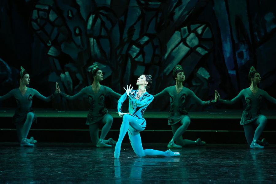 Все расходятся. Данила остаётся наедине со своими думами. От старых мастеров он знает: тайной камня владеет Хозяйка Медной горы, хранительница подземных сокровищ, и пока Данила не проникнет в эту тайну, не будет ему покоя. Являясь Даниле то ящерицей, то «малахитовой девкой», Хозяйка Медной горы заводит его в своё царство, и камни оживают перед глазами мастера: переливаясь огнями, сверкают самоцветы, распускается каменный цветок — мечта Данилы.