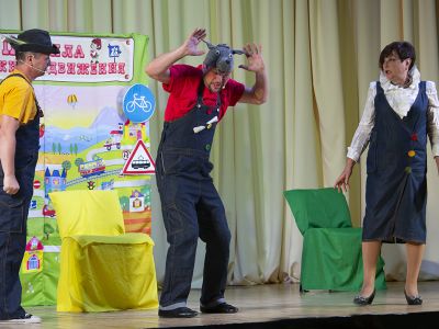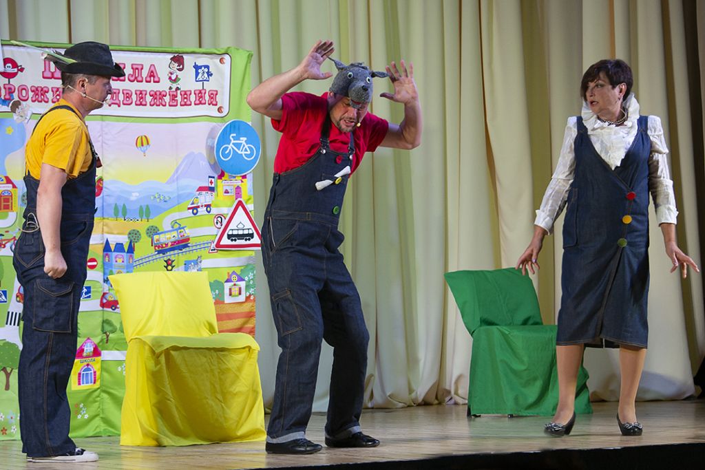 Каждый день по городу ходят тысячи людей, и ездит не меньшее количество транспорта. Чтобы в городе царил порядок пешеходы должны придерживаться правил и знаков дорожного движения. Разобраться в этом помогут герои спектакля: Красная Шапочка, ее Бабушка, Охотник, Полицейский и даже хулиган и задира Волк.