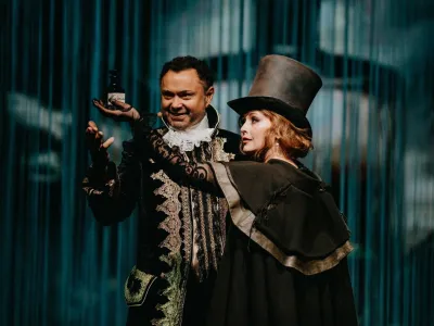 — В «Парфюмере» задействованы всего два актёра. Благодаря смелым режиссёрским решениям они предстают в неожиданных амплуа, виртуозно перевоплощаясь в буквальном смысле у зрителей на глазах!