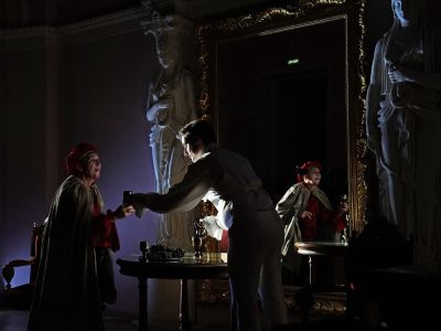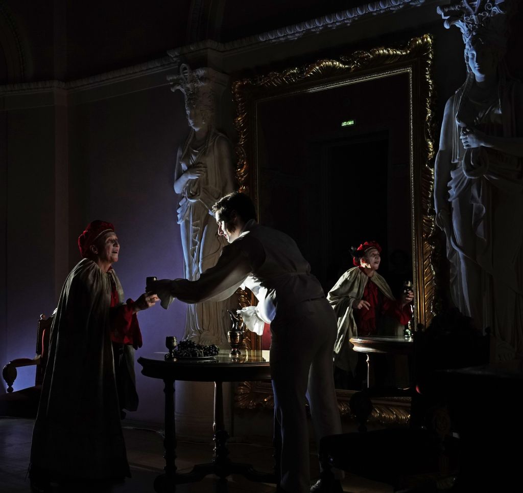 В «Маленьких трагедиях» Пушкин бесстрашно задаёт вопросы мирозданию — совместимы ли в человеке гений и злодейство, Фауст и Мефистофель? В названии «Маленькие трагедии» нам видится некий сарказм, самоирония, потому что трагедии эти вовсе не маленькие. Мы следуем за Пушкиным по лабиринтам Библиотеки-читальни его имени, словно находясь внутри Пушкина и стараясь не потерять из виду крылатку. Идём за ним от его мятежной юности к последнему пиру, на котором решится судьба Пушкина и его героев.
