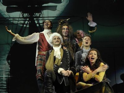 И маленьких и взрослых зрителей будут развлекать не только пираты, но и танцующий сыр, а также призрак самого капитана. Приходить на спектакль лучшей всей семьёй, потому что здесь найдётся, что посмотреть и ребёнку, и взрослому: декорации размером с трёхэтажный дом, аутентичные костюмы, каскадёрские трюки и постановочные бои на шпагах и мушкетах.
