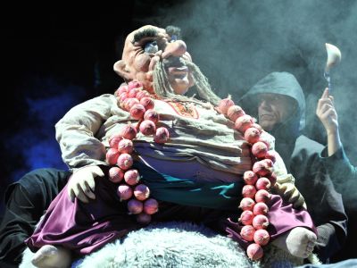 Спектакль посвящен всем кукольникам и всем артистам, кто несет искусство в самые отдаленные уголки. Поэтому история любви кузнеца Вакулы к красавице Оксане и его путешествия на черте за царскими черевичками для любимой хоть и рассказана ярко, но оказалась достаточно урезанной. Можно сказать, до минимума. Зато полноправными героями спектакля стали артисты маленькой кукольной труппы, отправившейся зимой на санях на выездной спектакль в далекую деревню. Артисты рассказали практически о себе – и весело, и иронично, и местами грустно.