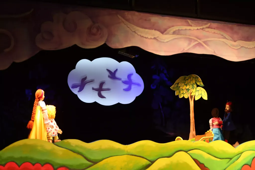Классический спектакль по такой красивой и поэтичной русской сказке призван ещё раз напомнить, что истинная красота это - то, к чему труд и руки человеческие приложены. Яркие расписные декорации, выразительные куклы, народная музыка в современной оригинальной обработке — это и многое другое не оставят зрителей равнодушными.
